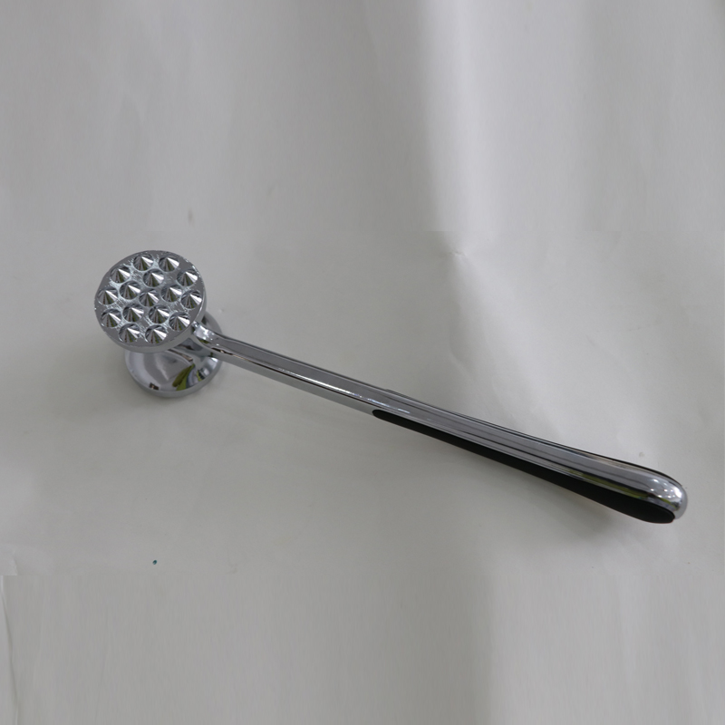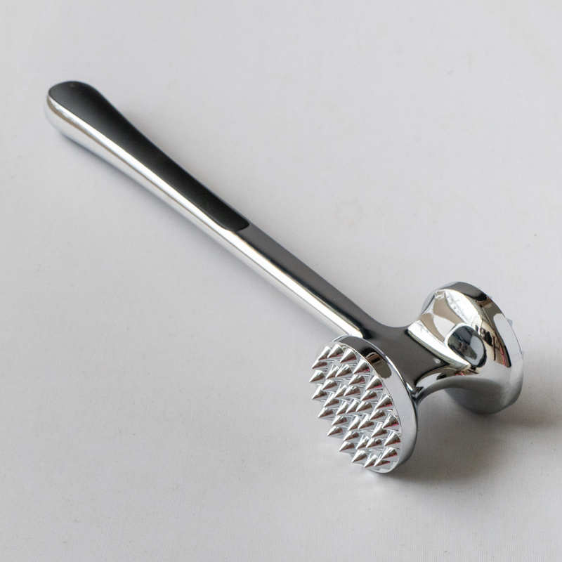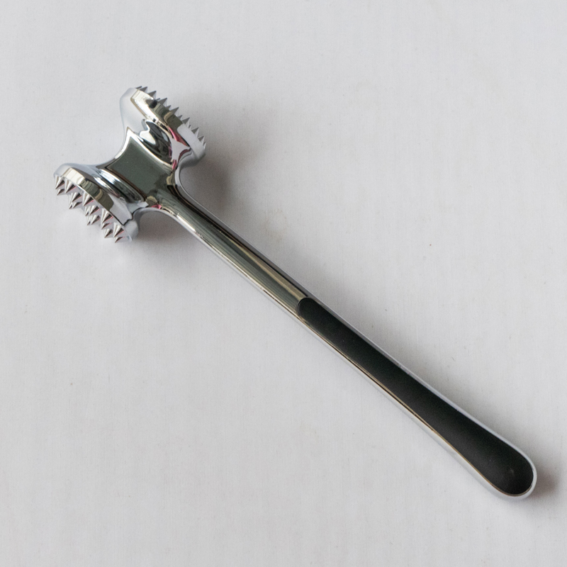 यह जिंहुआ हंजिया कमोडिटी कंपनी लिमिटेड द्वारा निर्मित एक जिंक मिश्र धातु मांस टेंडराइज़र है, जो एक एकीकृत डाई-कास्टिंग प्रक्रिया का उपयोग करके निर्मित होता है। धातु की सतह को सावधानीपूर्वक हाथ से पॉलिश किया जाता है और पूरा उत्पाद एक पर्यावरण-अनुकूल सुरक्षित इलेक्ट्रोप्लेटिंग प्रक्रिया से गुजरता है। फिर कोटिंग को स्टील जितना कठोर बनाने के लिए पास किया जाता है। 22 सेमी की लंबाई के साथ, यह एक वयस्क के हाथ में आरामदायक पकड़ के लिए बिल्कुल सही आकार का है। मांस टेंडराइज़र के सामने और पीछे के बीच वजन वितरण तदनुसार डिजाइन किया गया है सुनहरे अनुपात में, उपयोगकर्ताओं को न्यूनतम प्रयास के साथ मांस पर प्रहार करने की अनुमति देता है, केवल हथौड़े के सिर के गुरुत्वाकर्षण पर निर्भर करता है। मांस टेंडराइज़र सिर में विभिन्न प्रकार के मांस के लिए दो अलग-अलग सतहें होती हैं। हैंडल के दोनों किनारों पर प्लास्टिक बफर लंबे समय तक उपयोग के लिए आराम प्रदान करते हैं। टेंडराइज़र का कुल वजन 275 ग्राम है और इसका डिज़ाइन पारंपरिक मॉडल की तुलना में लागत को 13% से अधिक कम करते हुए उत्कृष्ट कार्यक्षमता सुनिश्चित करता है। इसे साफ करना भी बहुत आसान है, आप इसे बस पानी से धो सकते हैं या डिशवॉशर का उपयोग कर सकते हैं।